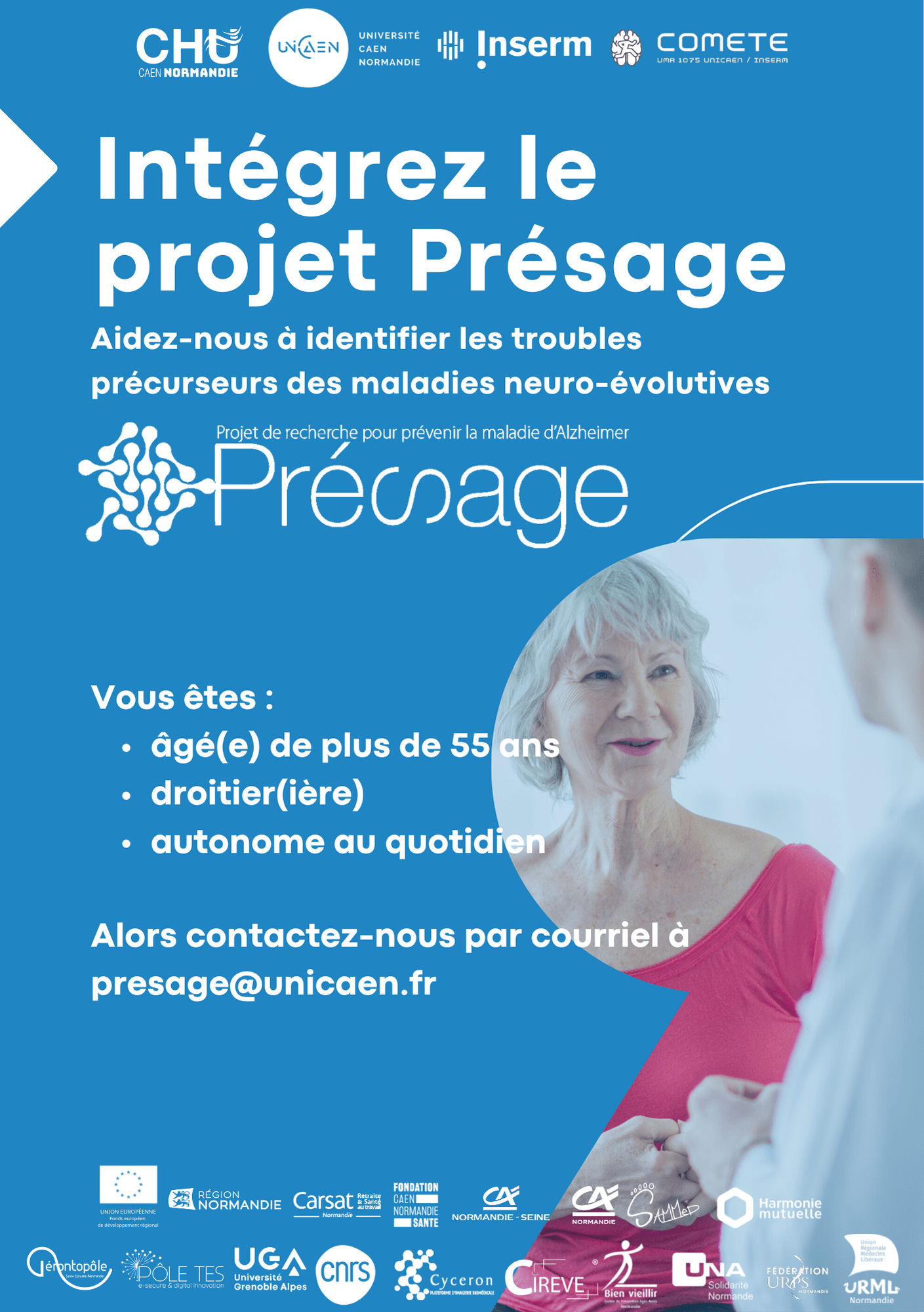 Le projet PRÉSAGE a donc pour vocation d'explorer cette hypothèse à un stade préclinique, puis de suivre l'évolution des individus, afin de déterminer les prédicteurs d'un déclin. L'objectif est également de mettre en lien cette atteinte avec d'autres paramètres neurophysiologiques, cliniques et neuropsychologiques (ex., le concept de réserve cognitive).